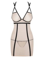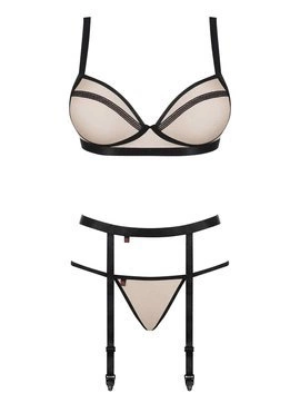 Beżowy komplet 3-częściowy z pasem do pończoch Obsessive Nudelia